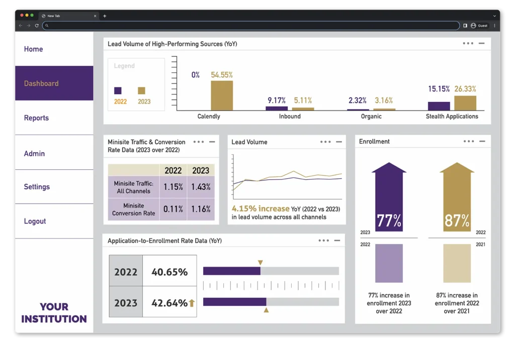 Institutions often underutilize their CRM or fail to integrate marketing, admissions, and retention data to make strategic decisions. A lack of reporting visibility and disconnected systems leads to missed opportunities in recruitment, re-engagement, and forecasting.