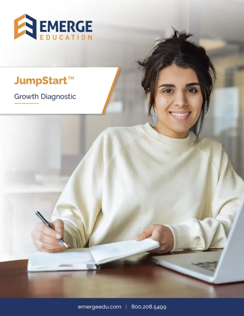Our Emerge Education JumpStart™ framework delivers a fast, focused growth acceleration diagnostic built for today’s higher education challenges. We analyze your college or university’s core drivers of success — including marketing, recruiting, retention, academic programs, financial aid strategy, technology, and workforce development — to identify the most impactful opportunities for growth. Whether you’re navigating enrollment declines, expanding new offerings, or planning long-term sustainability, JumpStart delivers data-backed insights and actionable next steps.